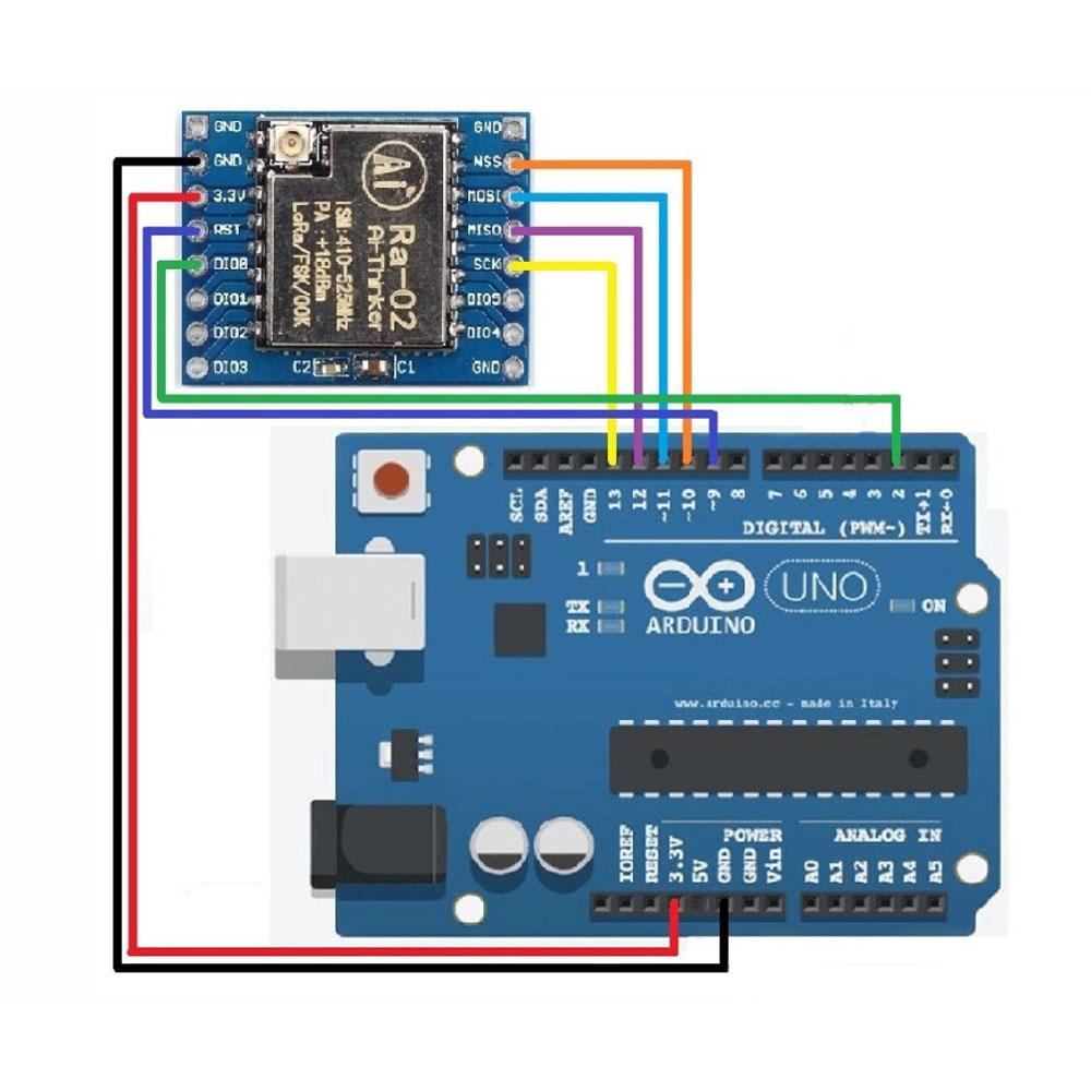 You will connect the Ra-01 LoRa module to the Arduino. Here’s the pin mapping for Arduino Uno: