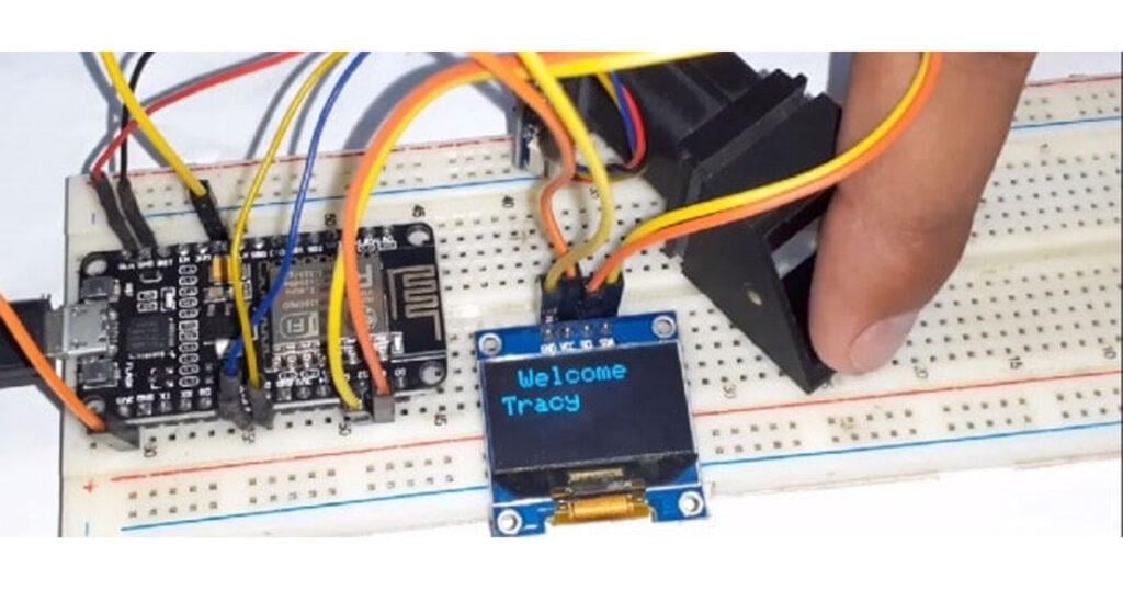 The above circuit diagram shows how an OLED Display & Fingerprint Sensor is interfaced with NodeMCU ESP8266 12E Board. The I2C pins of OLED Display, i.e SDA & SCL are connected to NodeMCU D2 & D1 pins respectively. Similarly, the fingerprint sensor is connected to UART pins D5 & D6. The fingerprint sensor Tx and Rx wire’s color may vary. In my case, the color is yellow and blue where yellow is Tx and Blue is Rx. So connect it by finding appropriate color wires else the module won’t be detected by NodeMCU.
