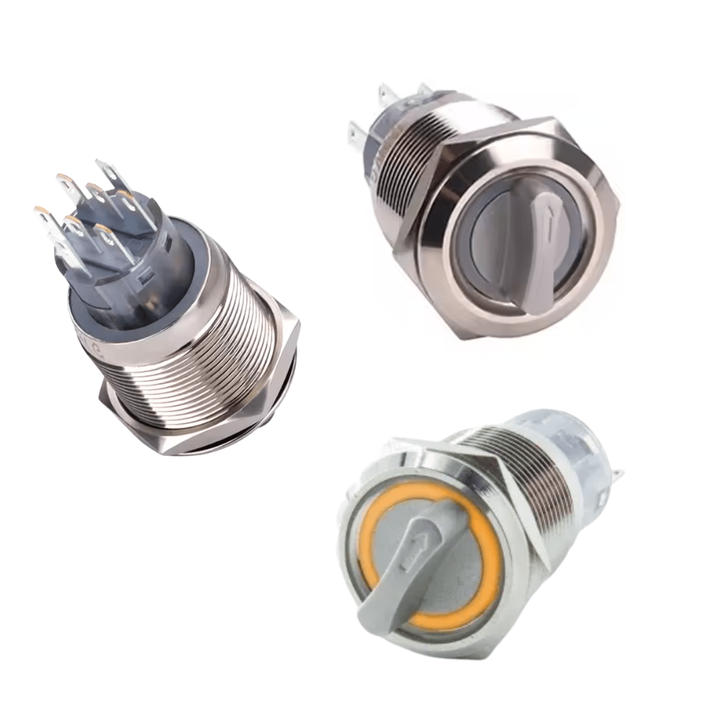 22mm 12-24V 8Pin 2NO 2NC 3Position Latching Yellow Metal Rotary Selector Switch