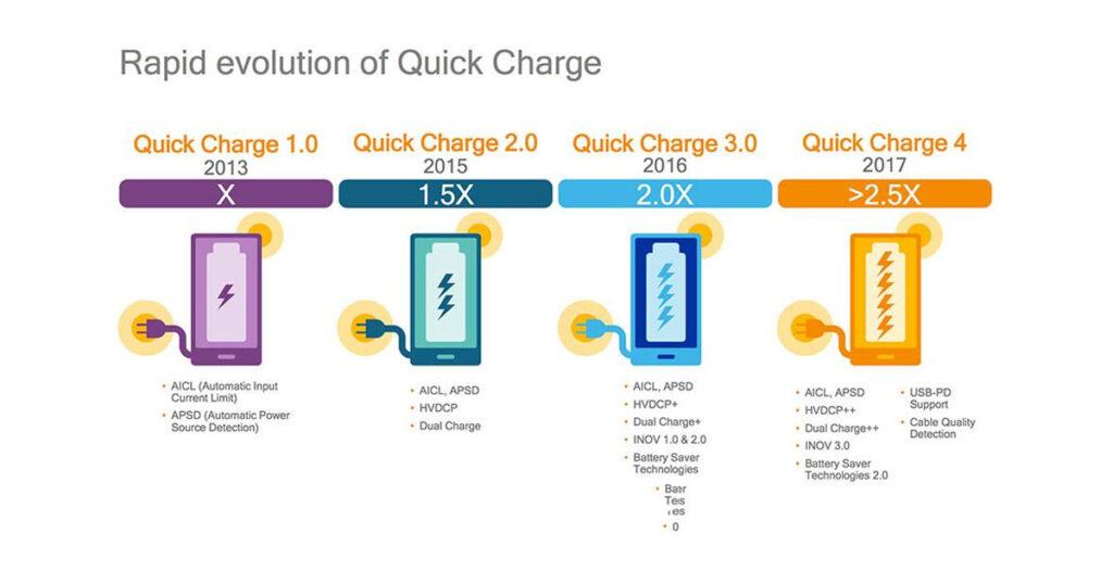 - Increased Power Output: Starting from 10W (QC 1.0) to over 100W (QC 5.0).