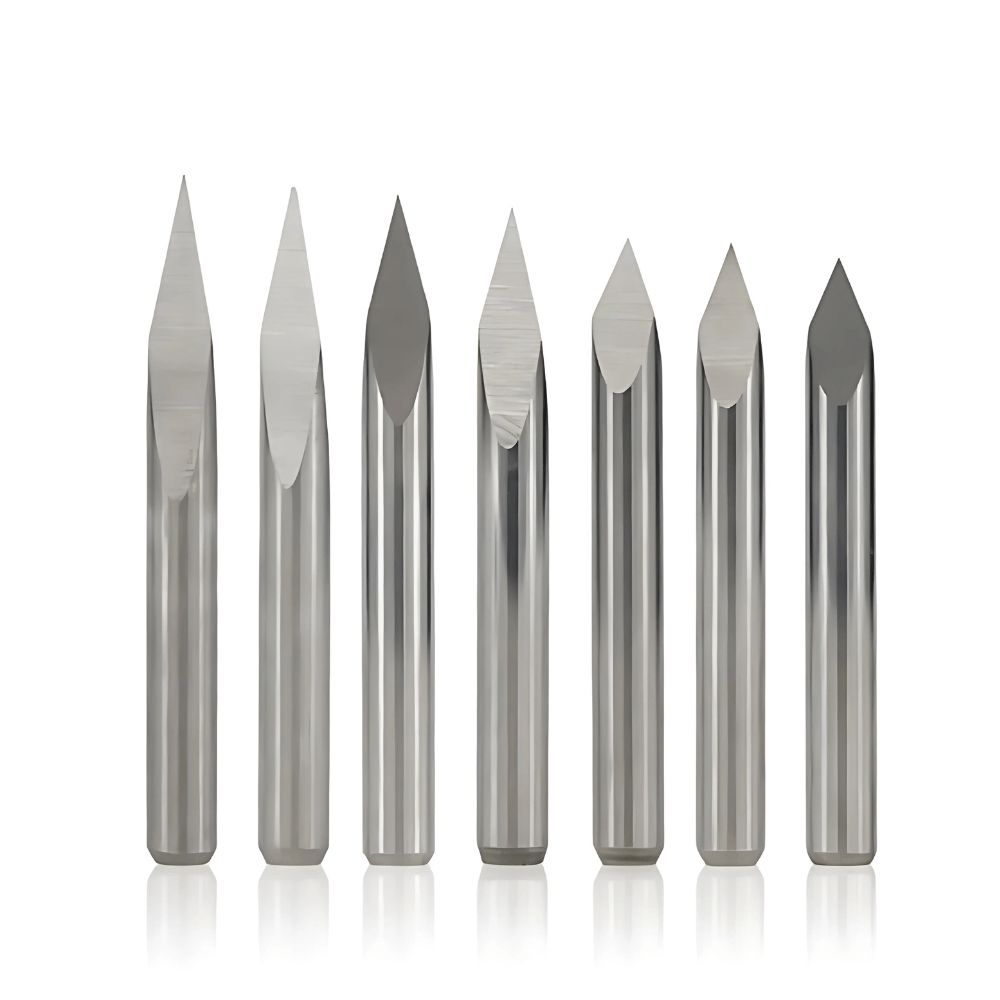 CNC Router V Bits, 1/8″ Shank 3 Edge Pyramid Engraving Bits, 0.1 mm Tip 15/20/ 30/45/ 60/90 Degrees Wood Carving Tools – 12 Pieces Set