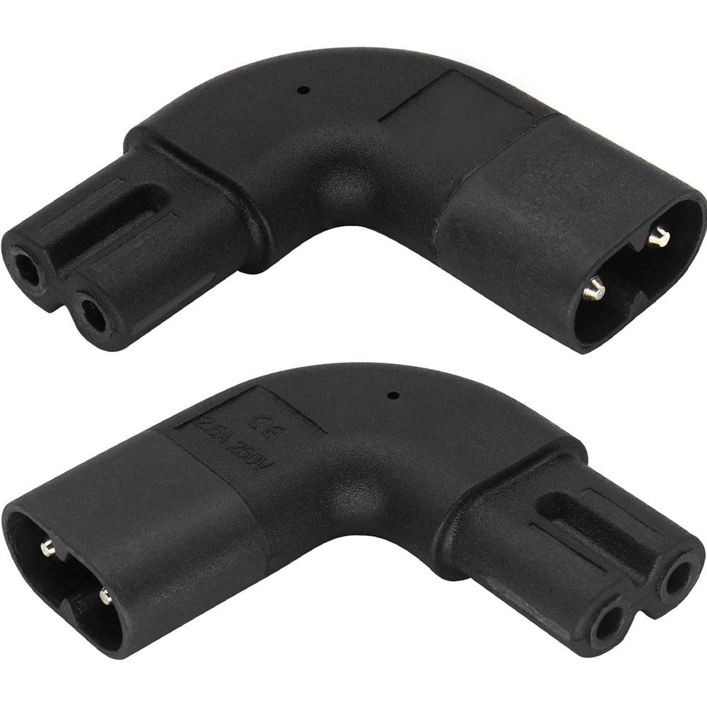 Right Angle 90 Degree IEC 320 C7 to C8 Power AC Adapter 10A 125V Left & Right Angle Figure 8 Male to Female IEC C8 to C7