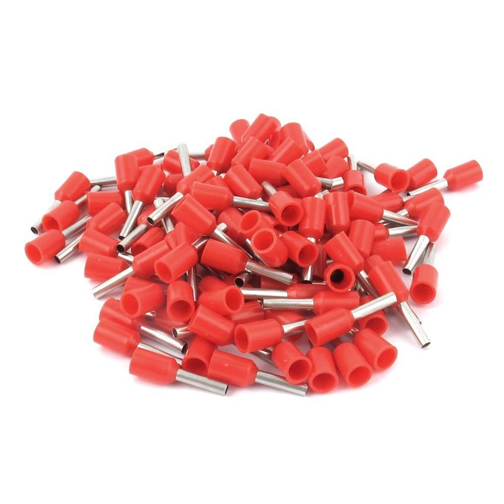 E2508 Red (Pack Of 100 Pcs) for 2.5 Sqmm Wire Gauge Insulated Cord End Terminal Lugs