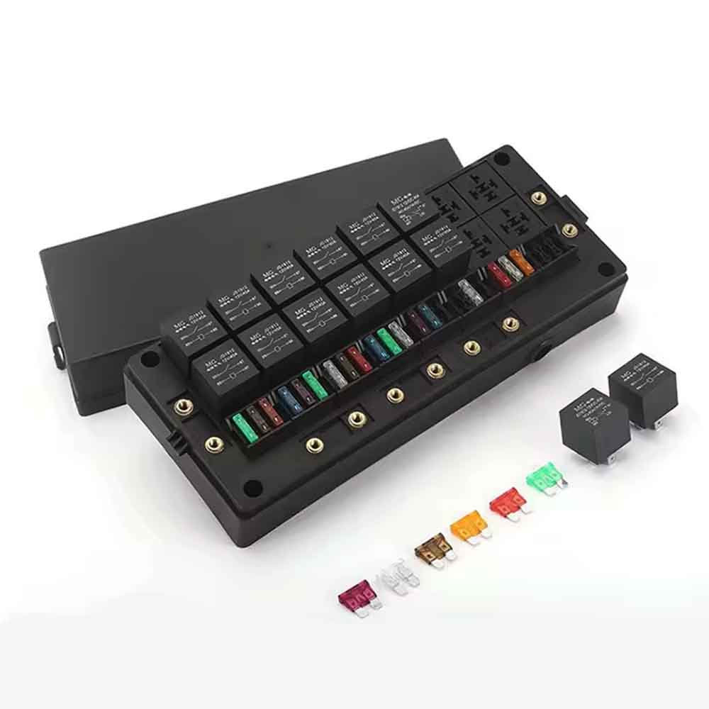 Car Relay Fuse Box With 16 Four Leg Angle Relay 24 Blade Fuse For Car, Truck, Automotive