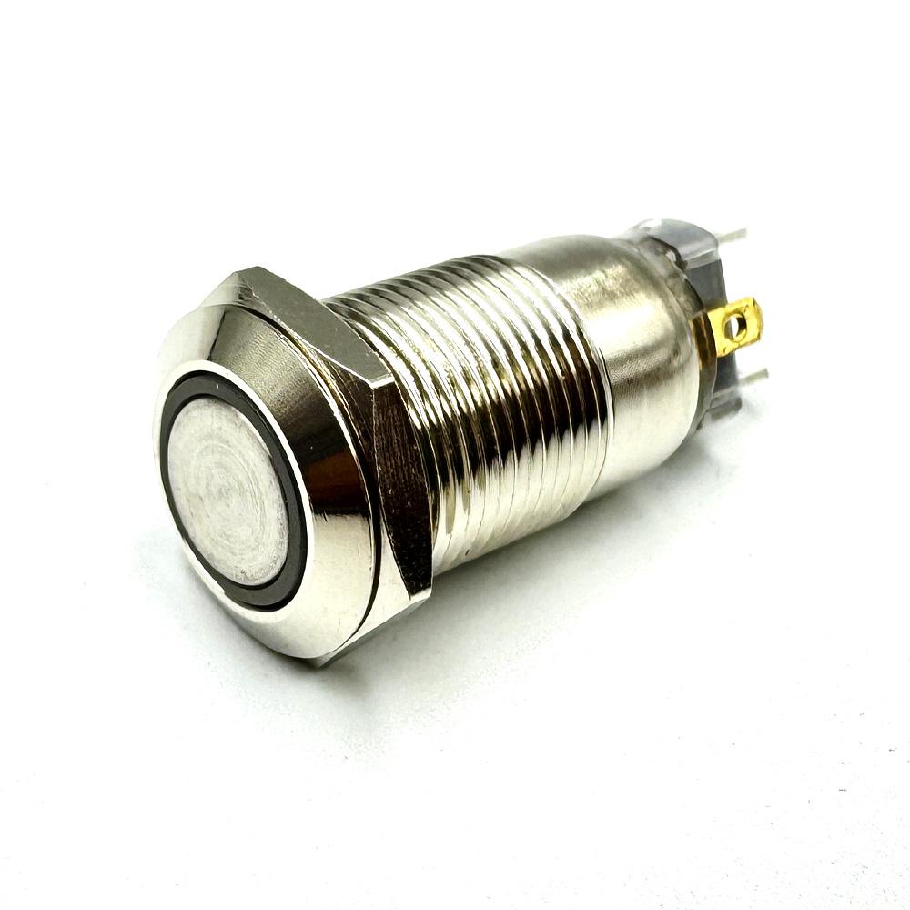 Short Flat Head 12MM 12-24V Ring Non-Latching Red Metal Switch