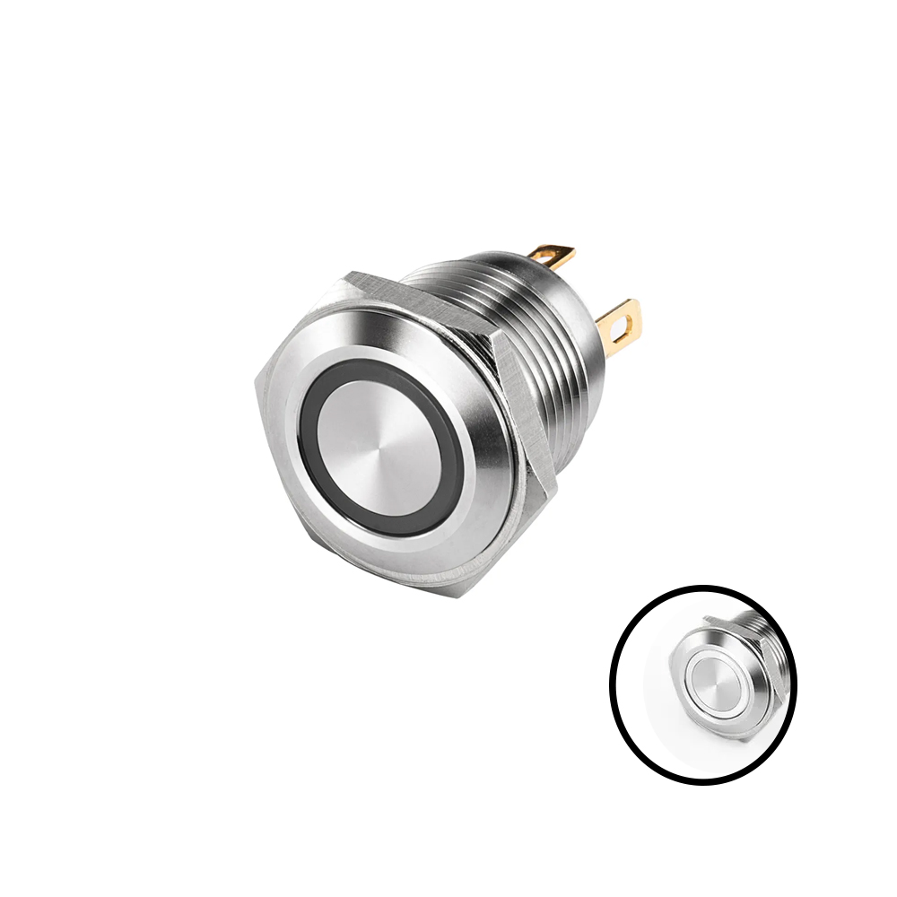 Short Flat Head 16MM 12-24V Ring Non-Latching White Metal Push Button Switch with Led Light Waterproof