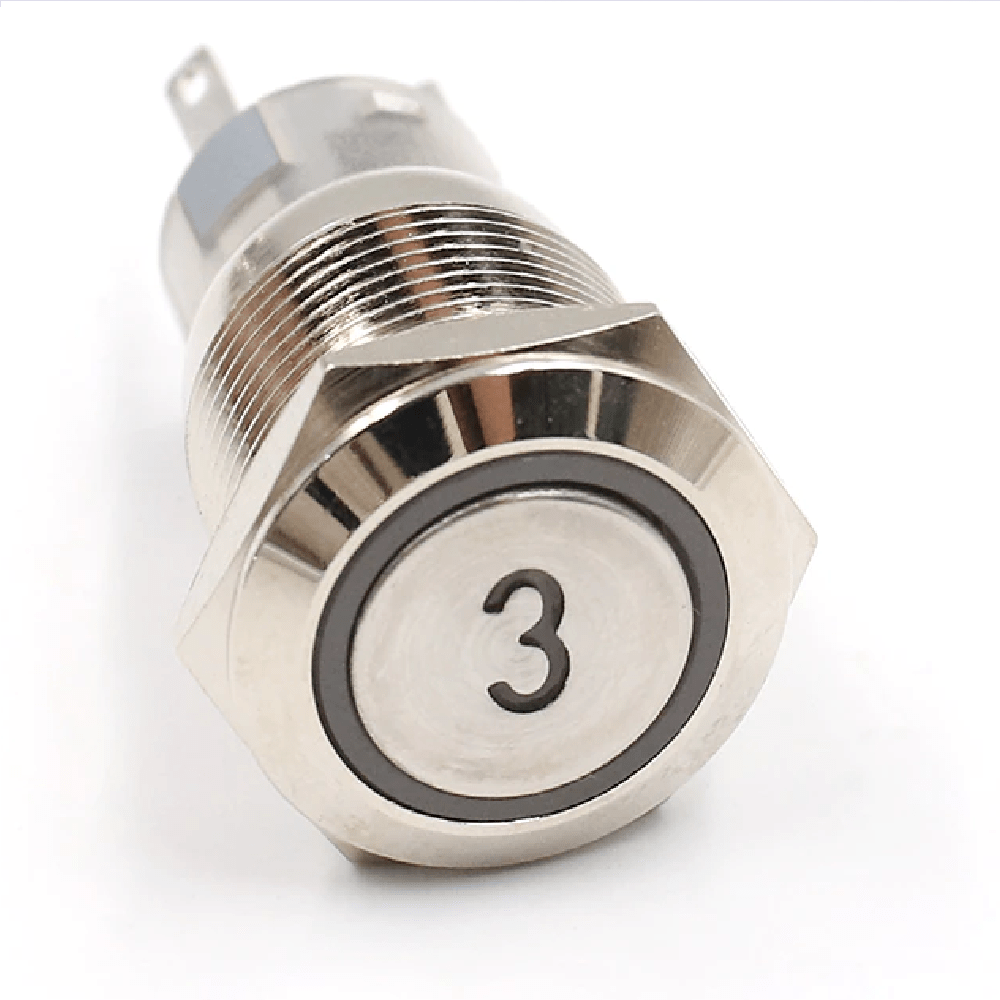 Lift Number 3 engraved Switches Non-Latching 5V with Light Blue 19mm
