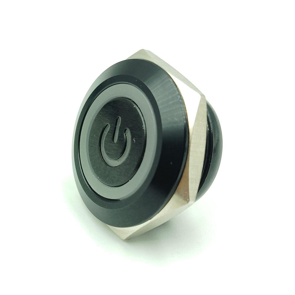 Flat Head 22mm 12-24V Power Non-Latching White 4-Pins Ultra short Black Oxide Metal Switch