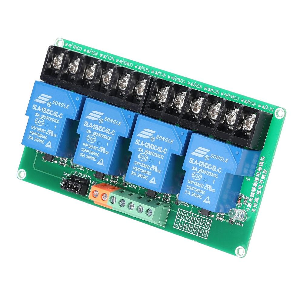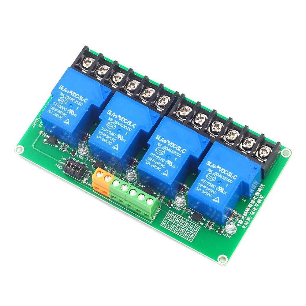 4 Channel Relay Module 30A with Optocoupler Isolation 12V Supports High and Low Triger
