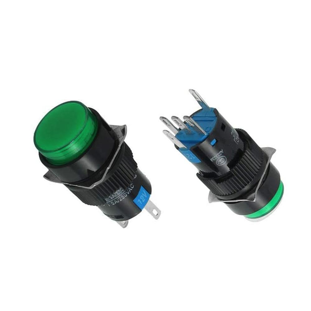 16mm 5Pin Round Button Non-Latching Green Button with 12V Lamp