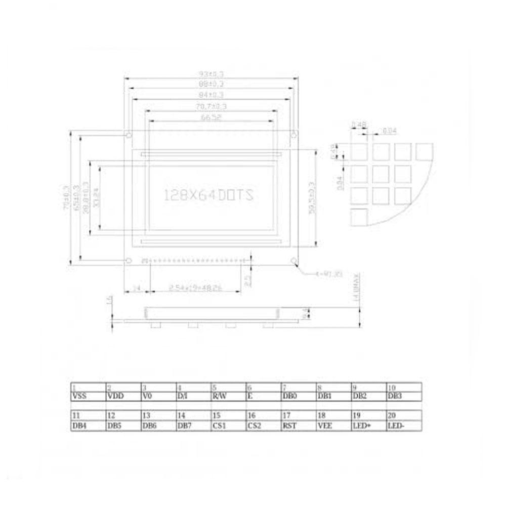 Graphic Lcd 12864 (Blue) is a framed graphical LCD 128 x 64px liquid crystal display with backlight. This unit is a very clear STN type LCD with a simple command interface. This new v2.0 module includes the negative voltage circuitry on board.