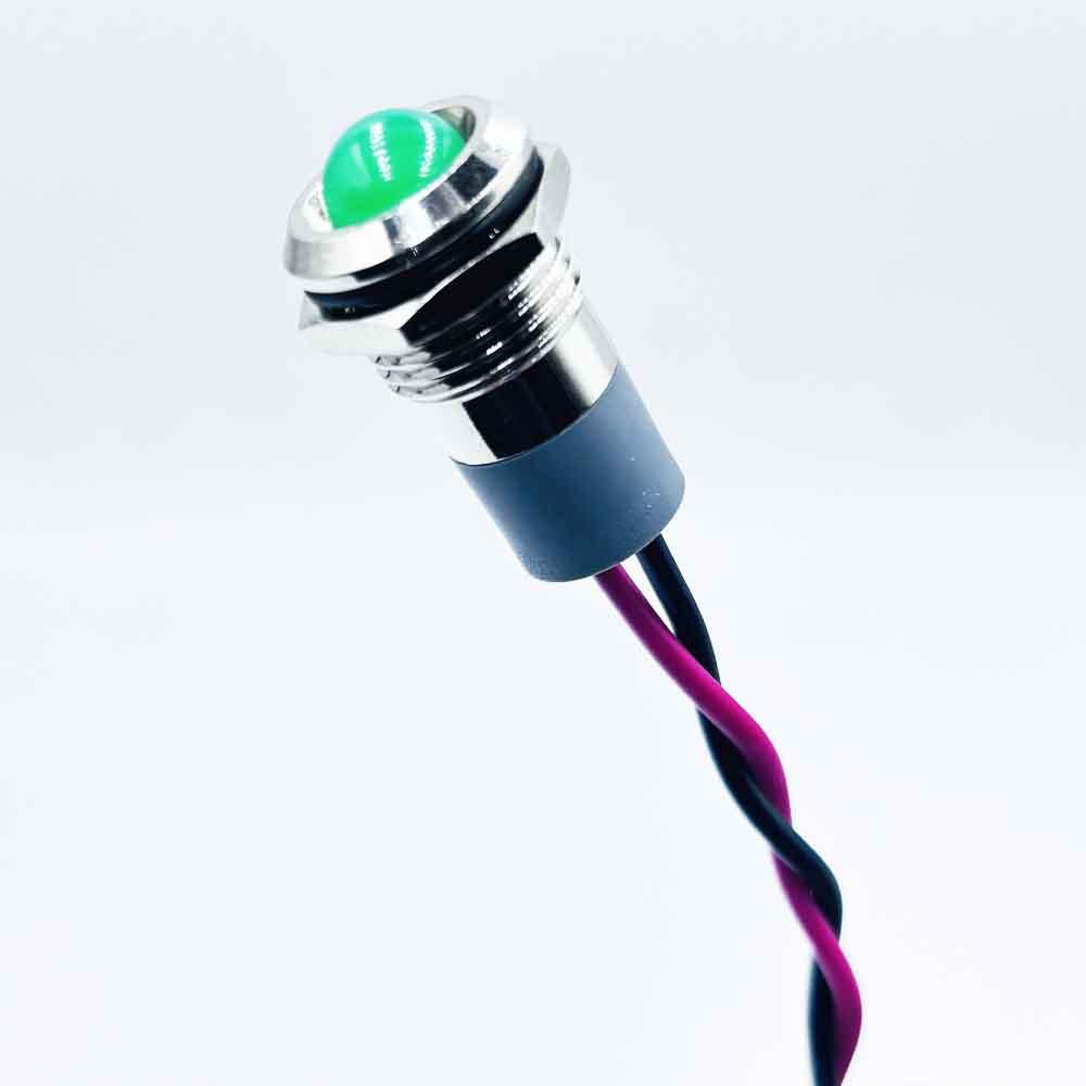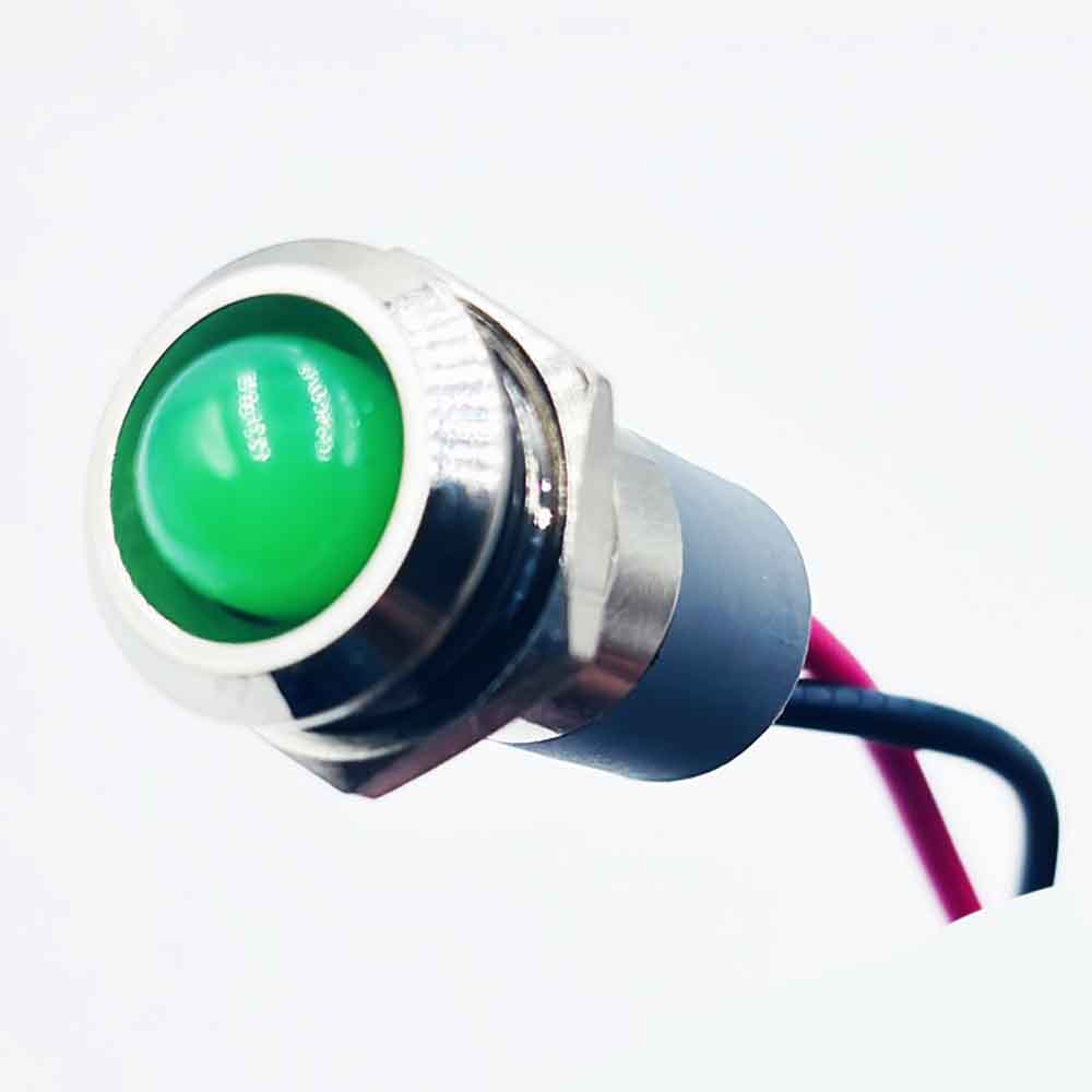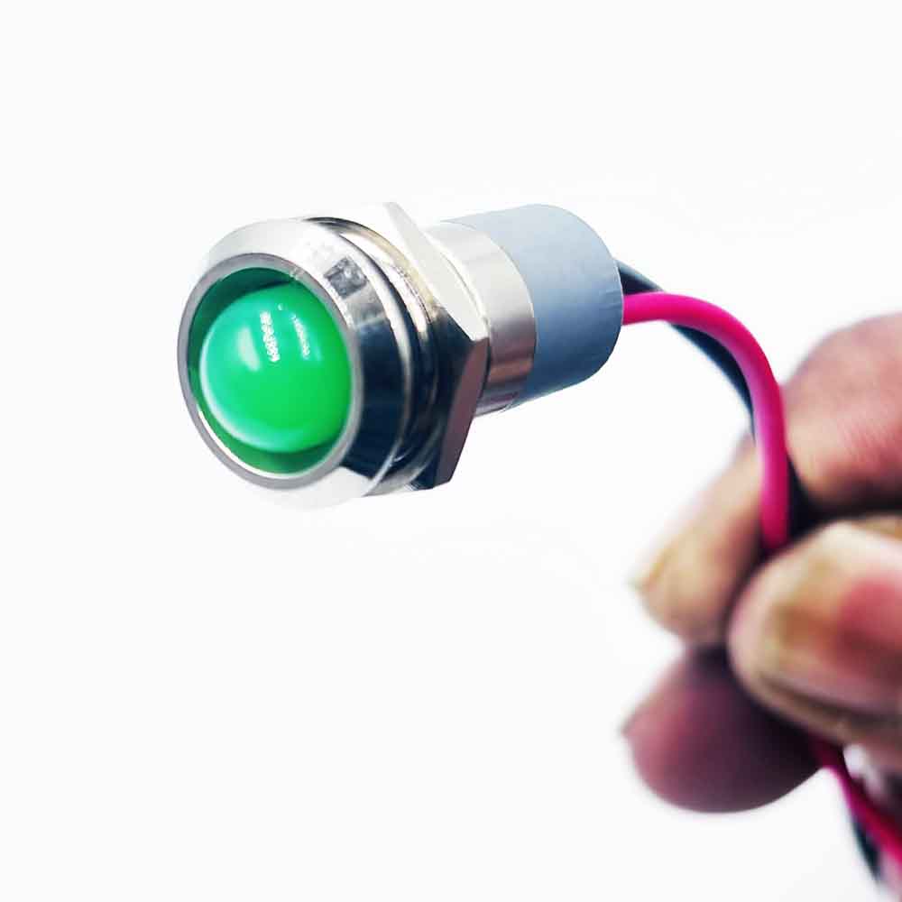 12mm 12-24v Green Light Spherical Shape Metal Indicator Lamp