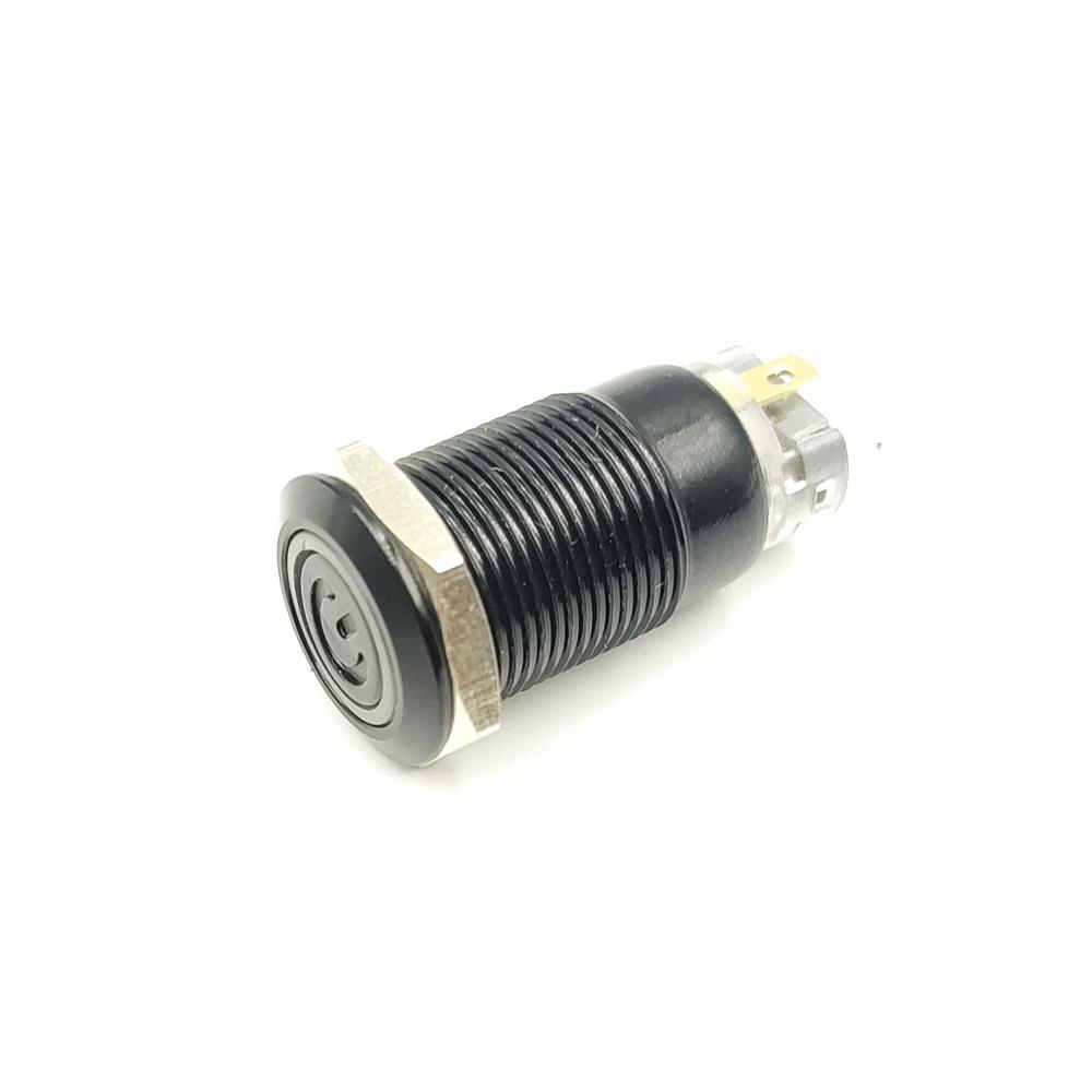 This 12mm metal switch is designed to operate with a voltage of 220 volts. It features a bold Yellow color and is equipped with 4 pins. The switch offers latching functionality, meaning it remains in its activated state until manually turned off. With a flathead design and a black oxide finish, this switch combines durability with a sleek appearance. It is suitable for various industrial and commercial applications where reliable and visually distinctive control is needed.