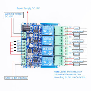 1 x 12V Modbus RTU 4, Channels Relay Module