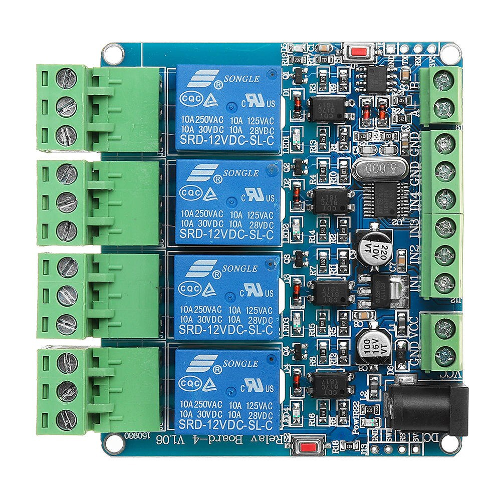 12V Relay Module 4-Channel This is a 12V 4-Channel Relay interface board. Be able to control various appliances and other equipment with a large current. It can be controlled directly by a Micro-controller (Arduino, 8051, AVR, PIC, DSP, ARM, ARM, MSP430, TTL logic) . 12V 4-Channel Relay interface board and each one needs 50-60mA Driver Current. Equipped with high-current relay, AC250V 10A ; DC30V 10A.