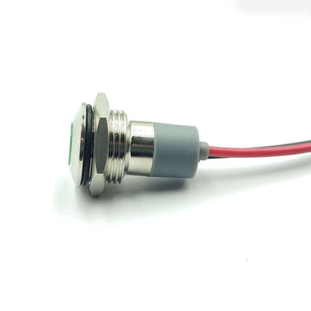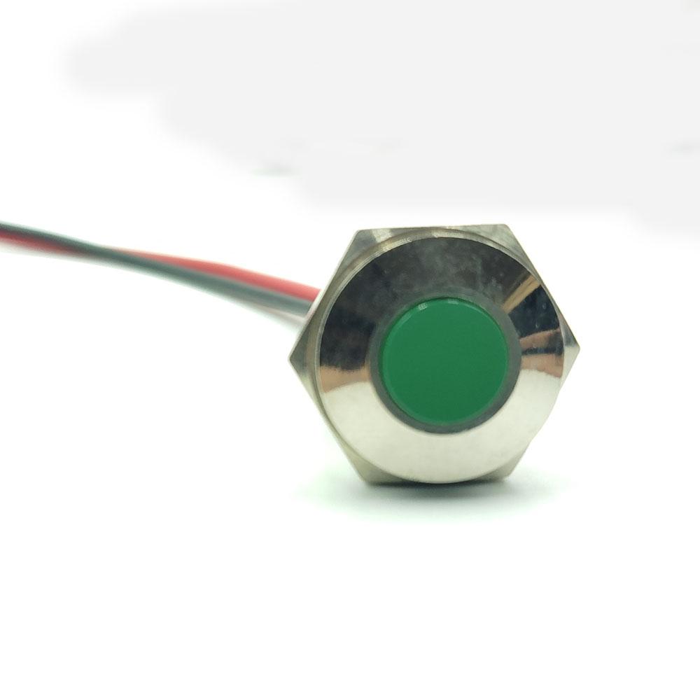 1 x 14mm 12-24v Green Light Flat head metal indicator lamp