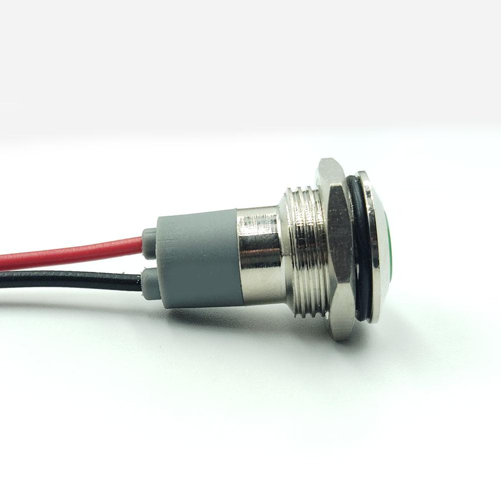 The Green 14mm Wire Main Metal Indicator Warning Light is a versatile and essential component designed for signaling applications in various settings. Operating on both AC and DC power at 12V-24V, this LED light signal panel lamp is crafted with durability and functionality in mind.