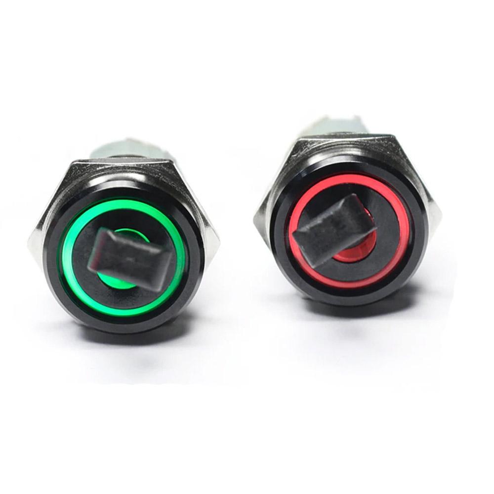 A toggle switch is a type of electrical switch that is manually operated by flipping a lever or toggle to either open or close an electrical circuit. This particular toggle switch is designed to operate within a voltage range of 12 to 24 volts. It comes in a distinctive Blue color and has a diameter of 16mm, making it easily visible and identifiable. The toggle mechanism allows for easy switching between on and off positions, providing a simple and reliable way to control electrical circuits.
