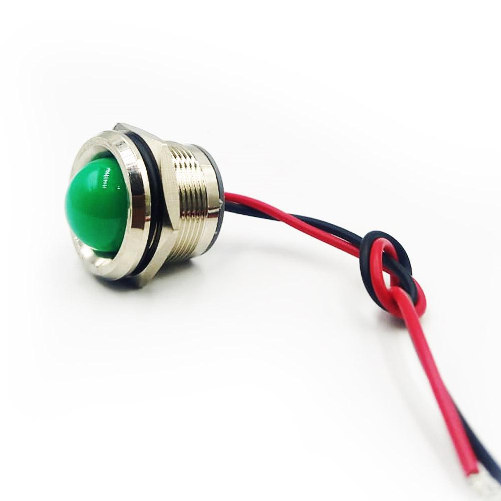 19mm 3-48V Green Spherical Shape Metal Indicator Panel Mount LED Lamp