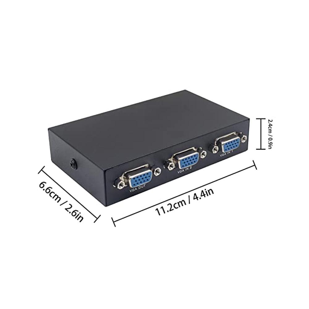 1 x 2 Port VGA Switch 2 in 1 Out Press Button for PC TV Monitor-Black