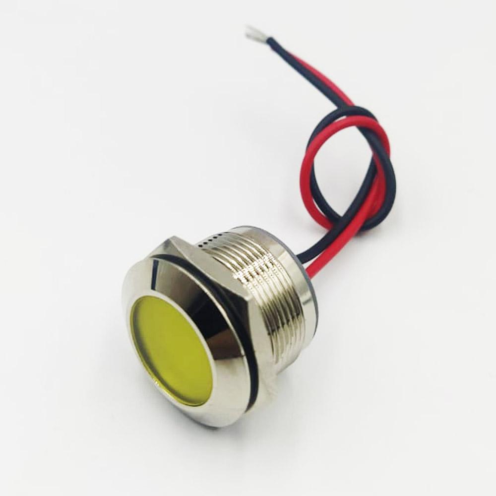 22mm 220V Yellow Flat Metal Indicator Panel Mount LED Lamp