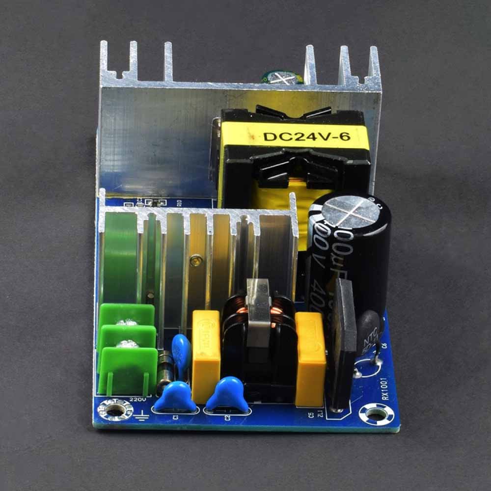 This24v 6A power supply module board takes 220v AC and convert it into 24V DC with 6A current at output . This is good alternative for project and applications regardlessly building a very own power supply.