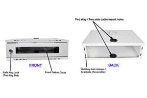 The material we use for this rack is rustproof and Long lasting. This 2U rack is perfect and comfortable for viewing, Less space-consuming and Keeping your devices neatly stored. Its top and bottom surface has a space for cables. It has a provision which you can set a fan for cooling. It has 2 Power Plug Socket with cable. 2U rack comes with wall mounting brackets. just open this brackets, reverse it and attach with the wall.