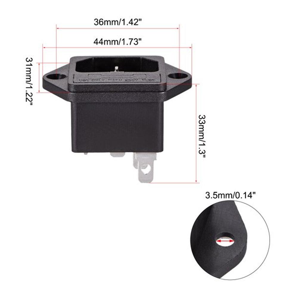 1 x 3 Pin C14 male Panel Mount 250V DC/AC 10A Power Terminal with fuse holder