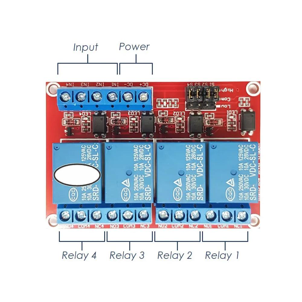 1 x 4 Channels 12V Relay Module High and Low Triggering