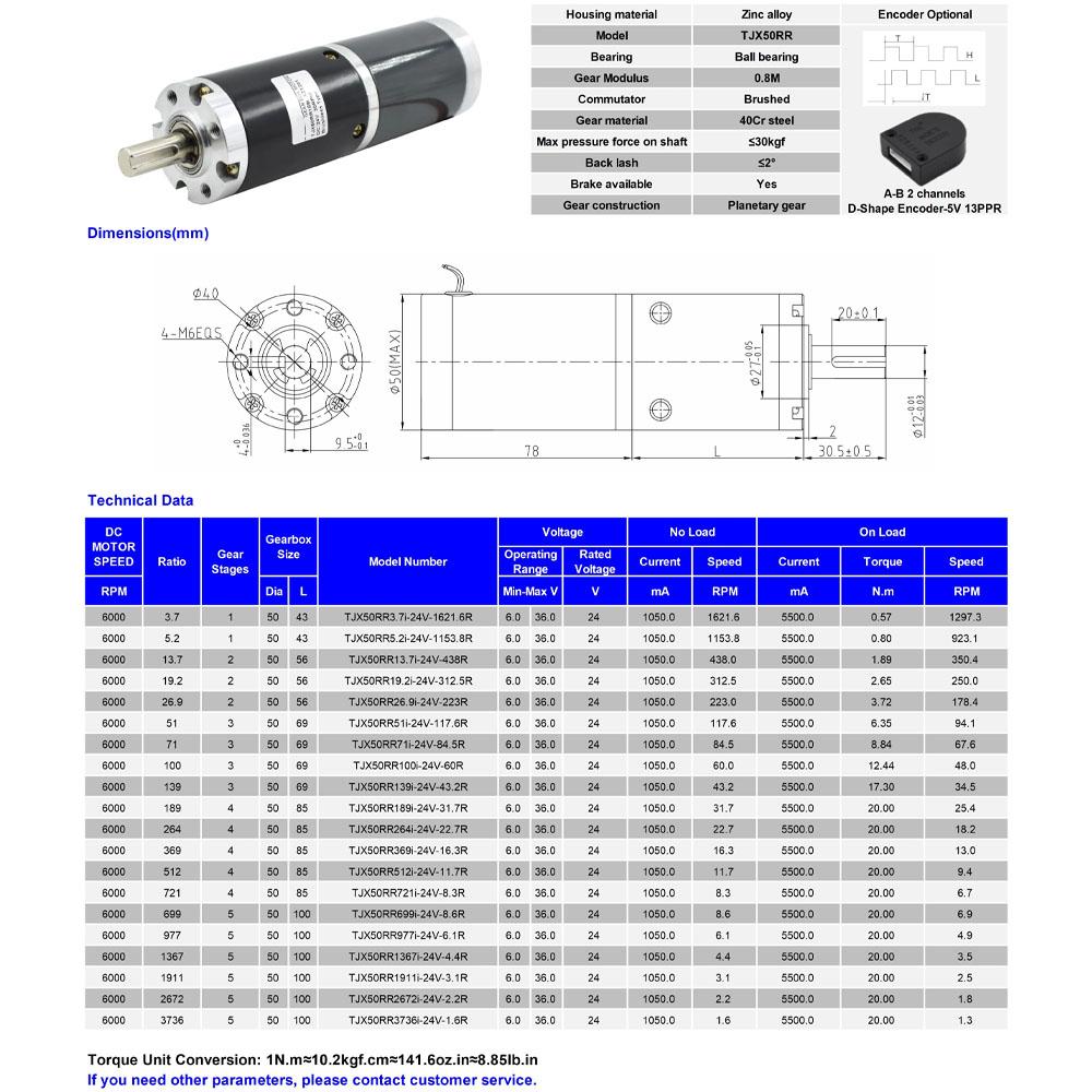 Datasheet of 50GX-5078 Planetary Gearbox Motor