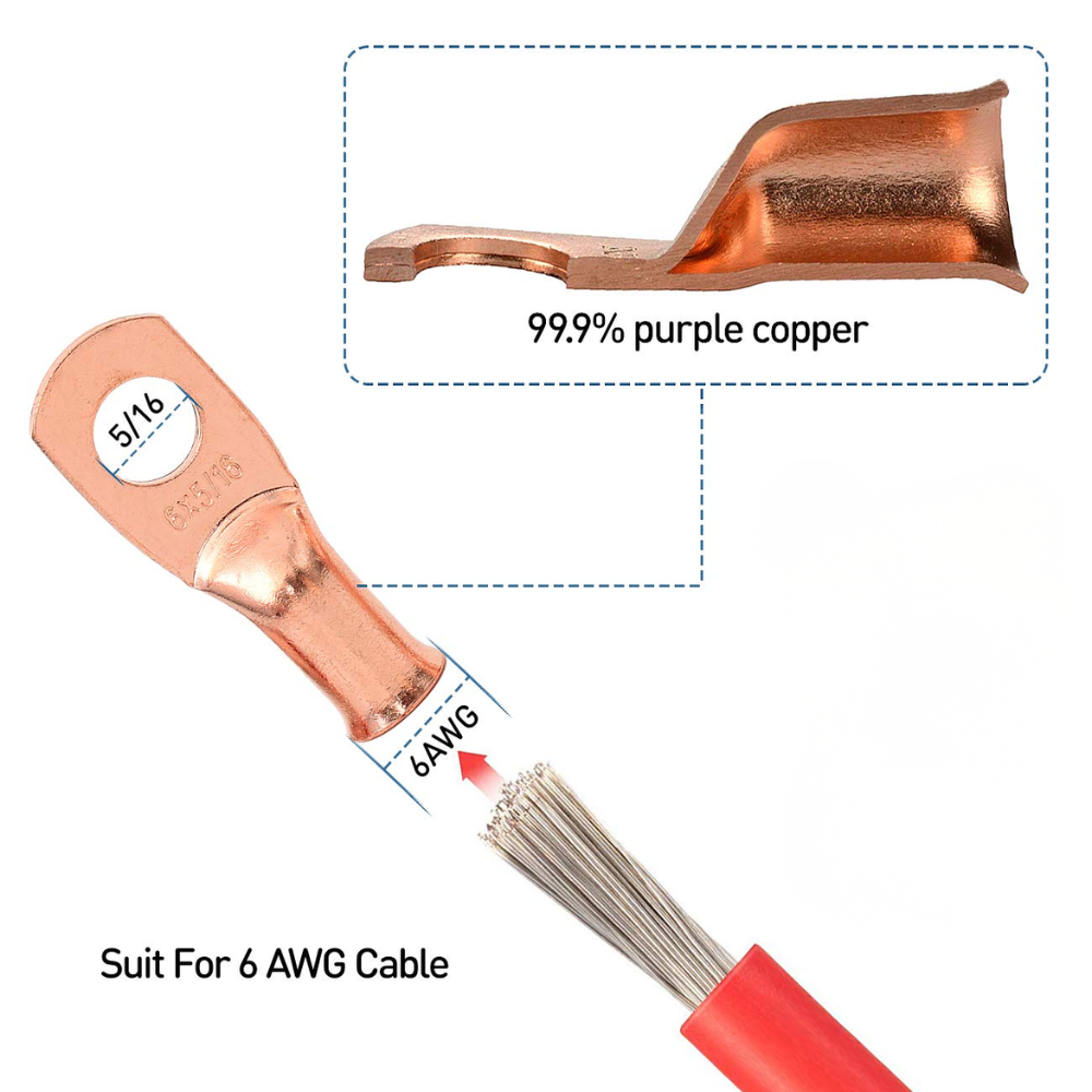 6×5/16 Pure Copper Tube Terminal Cus Lugs (Pack of 5)