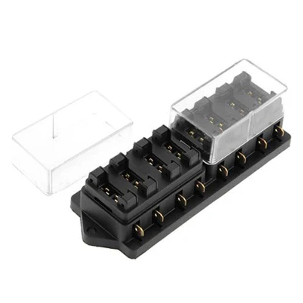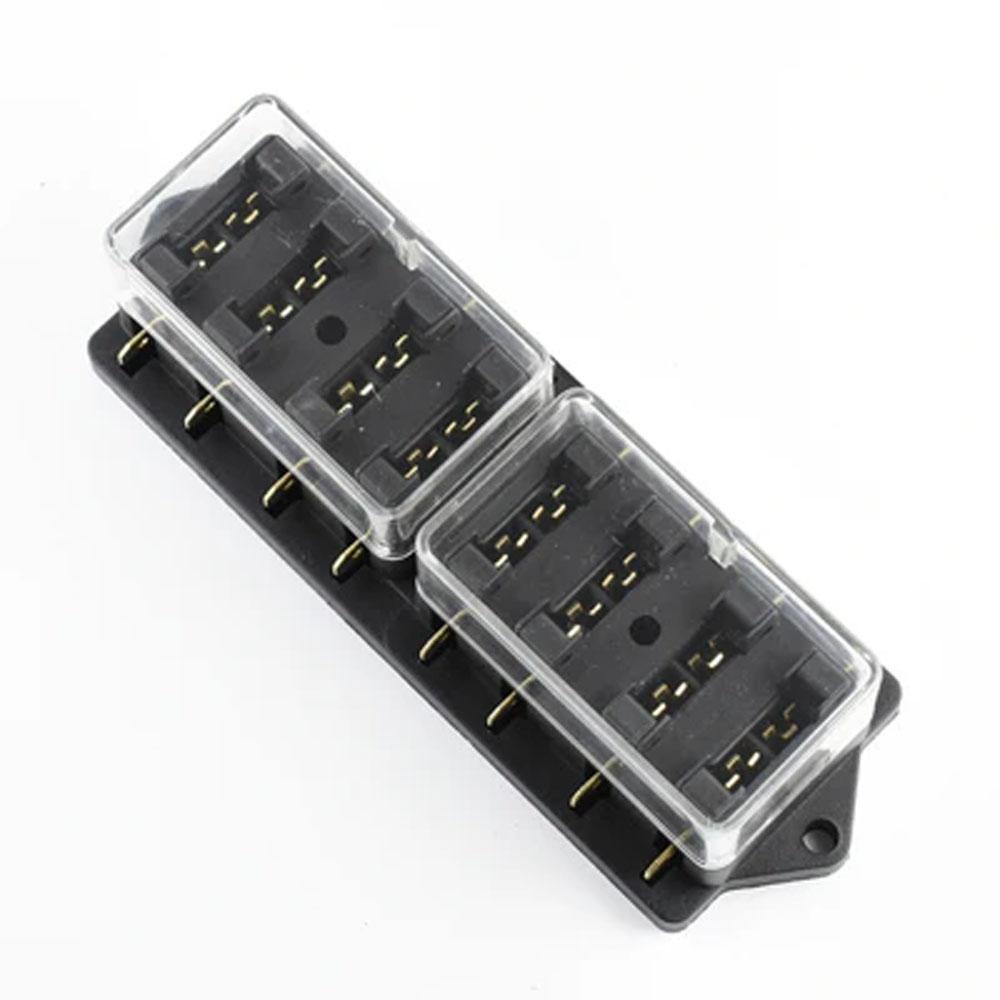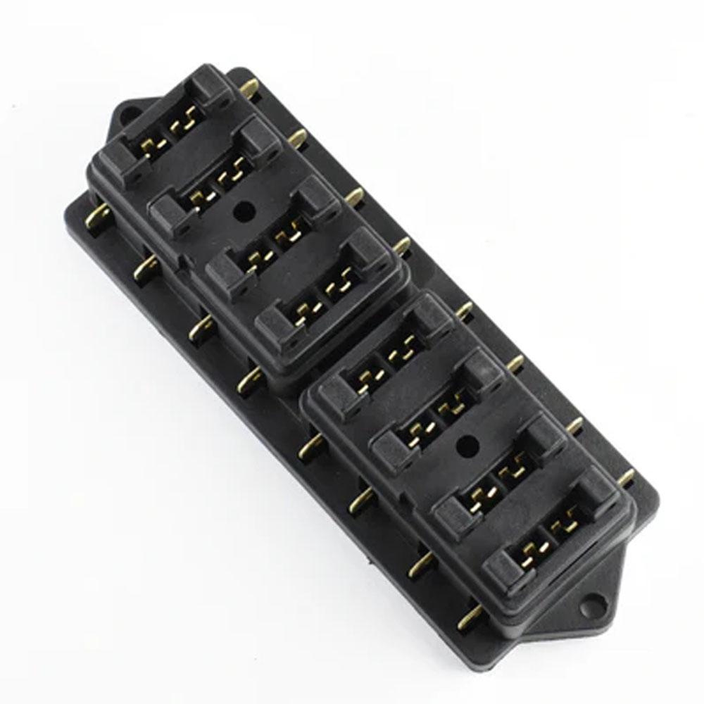 An 8-way car fuse box designed to hold standard ATO blade fuses, compatible with 12V and 24V electrical systems. It offers easy installation and organized protection for automotive and marine electrical circuits.