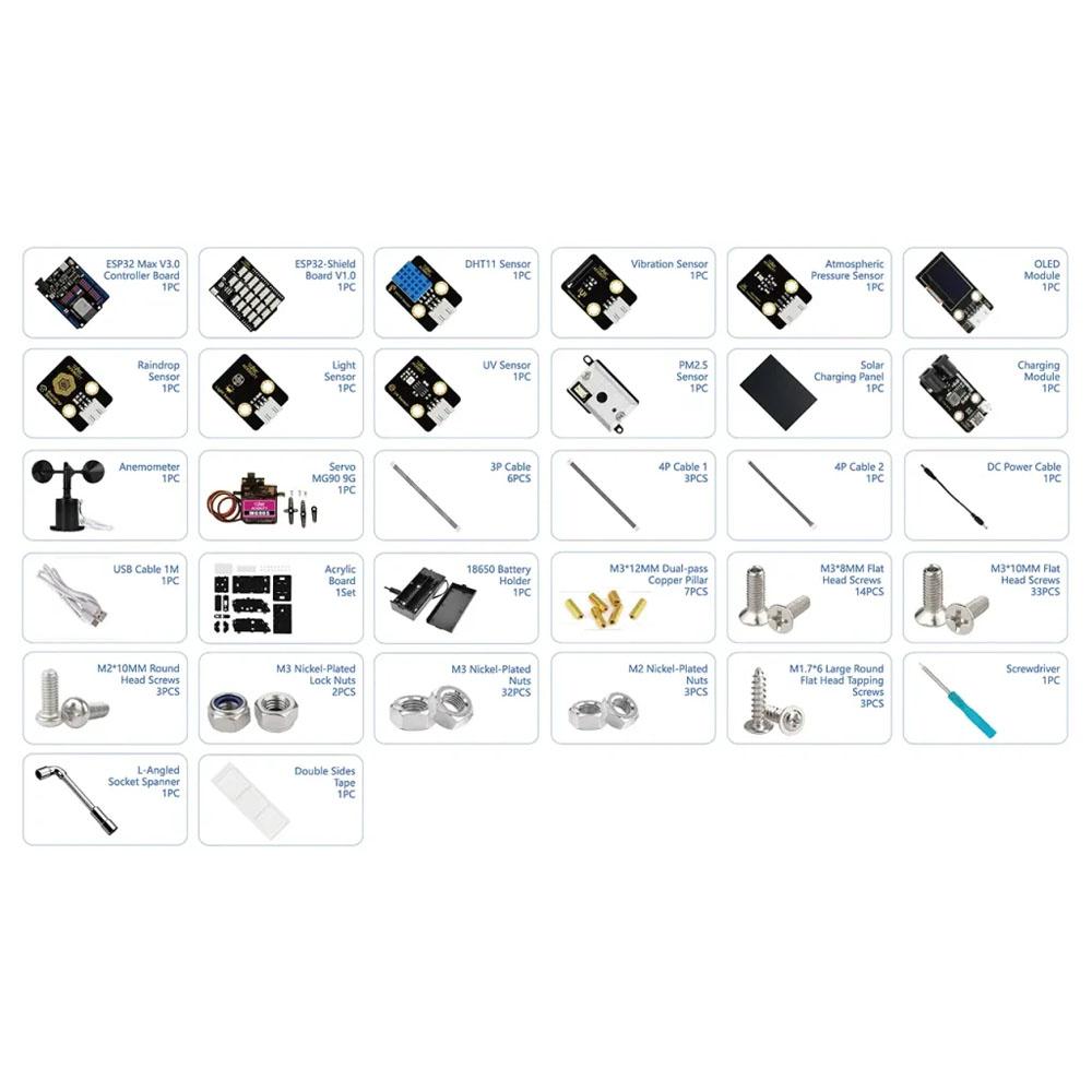 The smart weather station kit is based on ESP32 IoT technology, enabling real-time weather monitoring and prediction. It helps you master relevant programming knowledge and experience the application of technology in daily life.