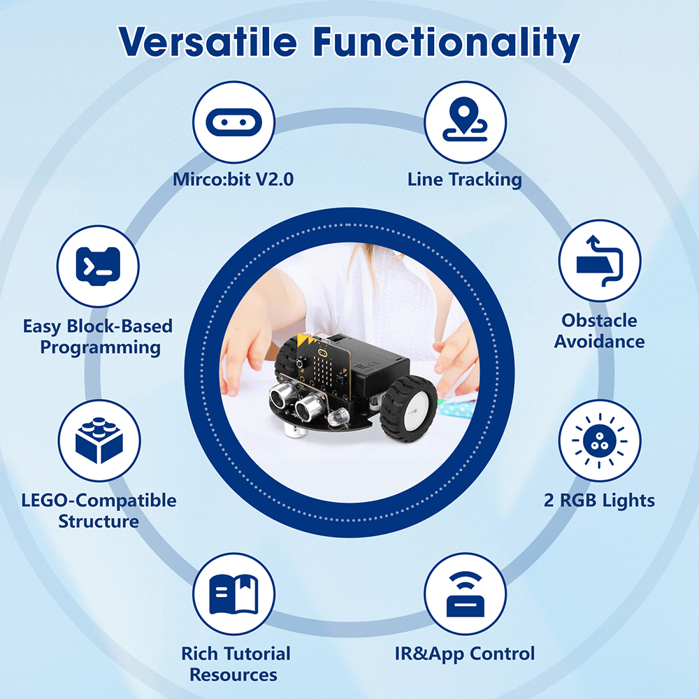 Easy-to-Assemble Mini Car Kit: Assembling the TinkerBott takes just 2-3 minutes! Program it to drive automatically or control it via the included infrared remote or smartphone app.Rich Online Tutorials: Includes 16 detailed step-by-step, story-based tutorials designed to make learning fun and accessible, even for beginners with no programming experience. Plus, enjoy 24-hour technical support for assistance whenever needed.