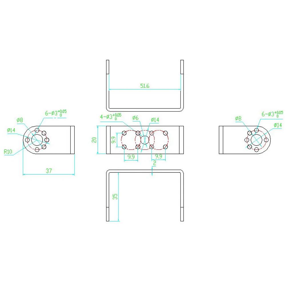 1 x Aluminum Short U Brackets For Servo Silver/Black