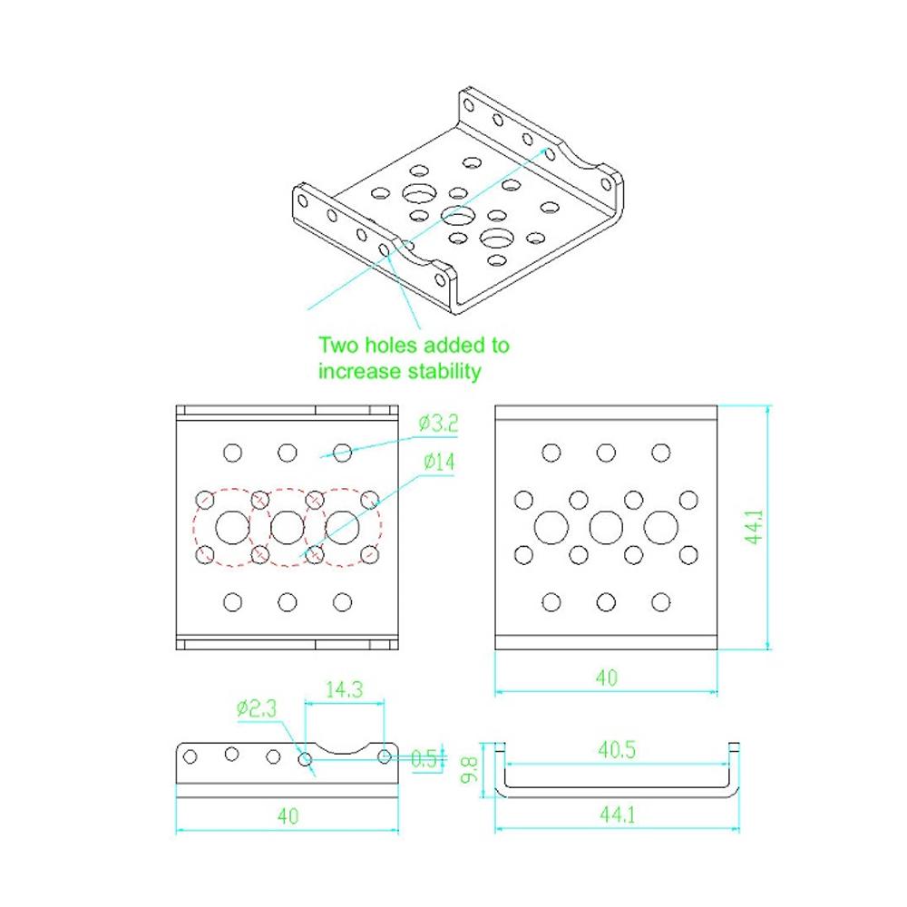 1 x Aluminum Side U Brackets For Servo Silver