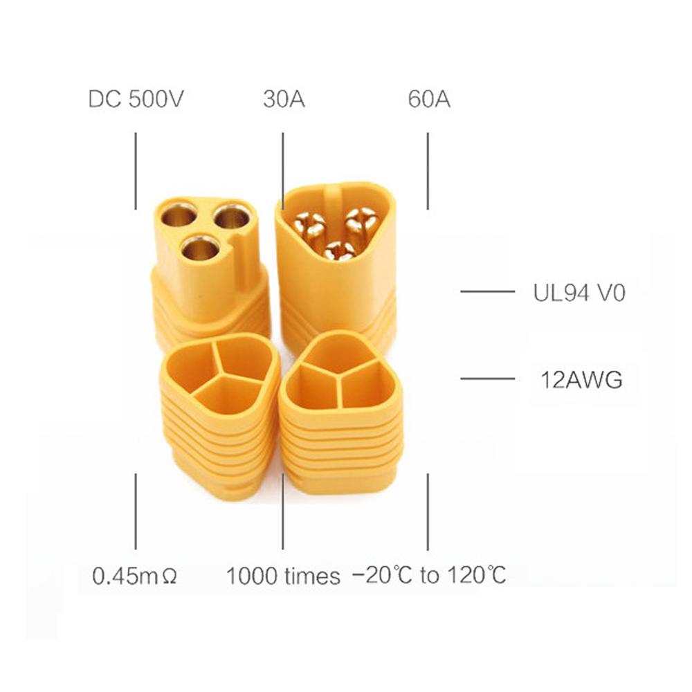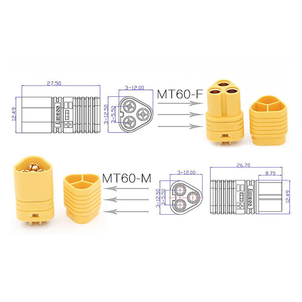 MT60 3 Pole Motor / ESC Connector set is the perfect solution for securing your brushless motor / ESC connections. The connector set features male and female connectors which are both fitted with 3.5mm bullets and supplied with a cable tidy attachment to keep things nice and neat. The connectors are manufactured from toughened plastic and provide a very secure fit making them perfect for EDF and multi-rotor applications.