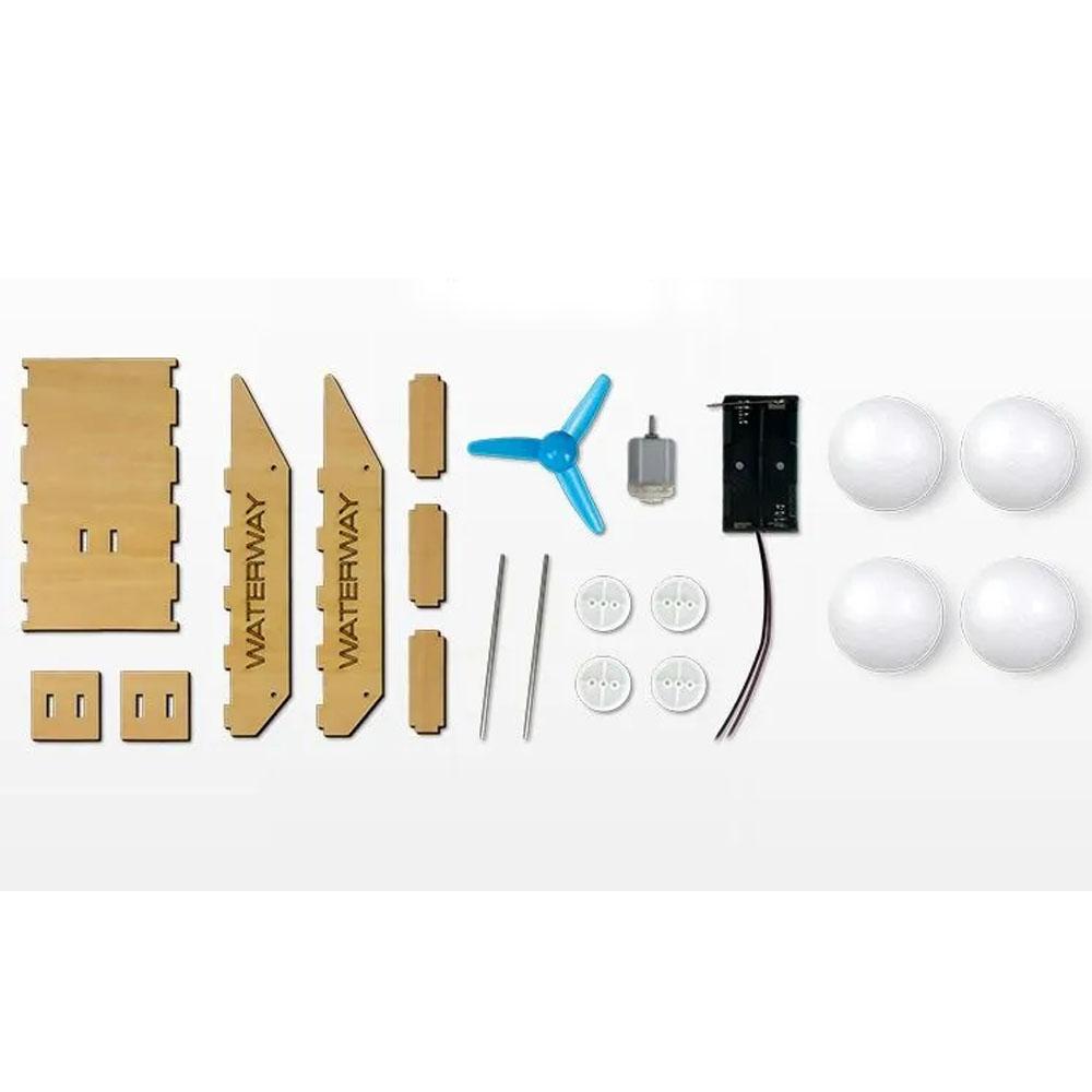 The focus of the kit is to introduce children to the principles of vehicle mechanics and buoyancy. By assembling the model, kids can explore how vehicles designed for both land and water are constructed and function.