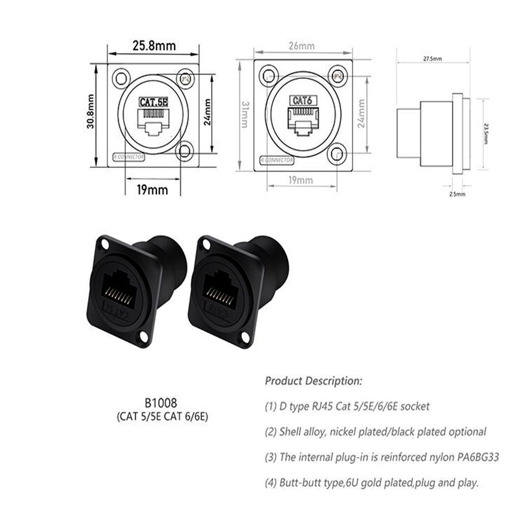 Cat6 – Cat6 Pass-through Panel Mount Connector