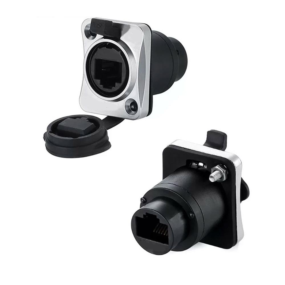1 x RJ45 Female Socket Dual Port IP65 Waterproof Ethernet Connector Panel Mount
