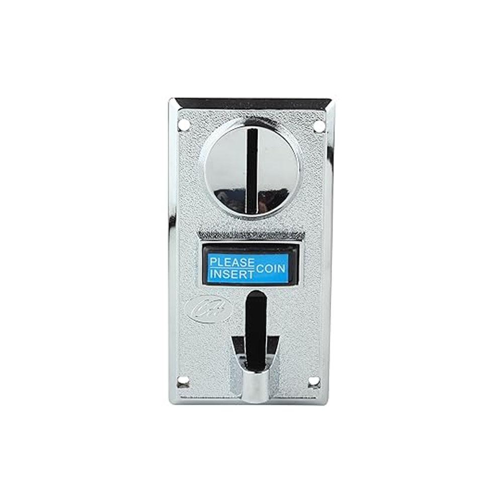 The sensors in this coin acceptor use the thickness, diameter, and fall time of the coins to identify them and it’s fully programmable so you’re not limited to any particular type of currency. Simply use the buttons and 7-segment display on the side of the unit to select a coin profile, insert a bunch of coin samples (or the same one, over and over) and you’re good to go! After you’ve programmed the coin profiles, the coin acceptor will recognize them and report when each type is inserted, rejecting other coins.