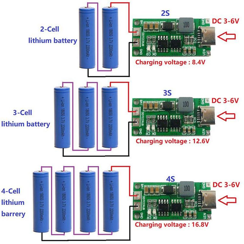 Charging Module Battery Charging Board Type-C Step-Up Boost Module 18650 Lithium Battery Charger Module( 2S 1A)