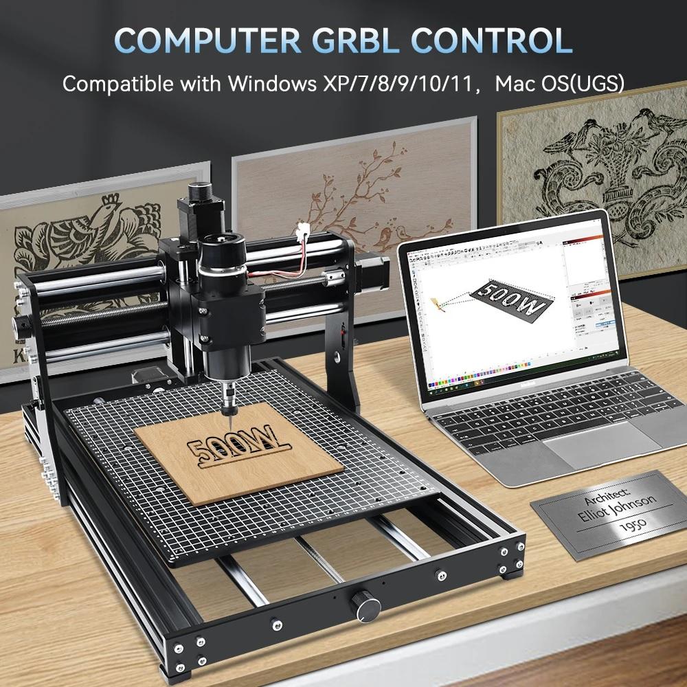 • High Power Spindle & All-metal Body: This 3020 PLUS CNC machine is solidly built with an all-metal body structure and an upgraded 500W 52mm spindle with E11 collet, more powerful and higher efficient, making it possible to cut stainless steel, aluminum and other metals