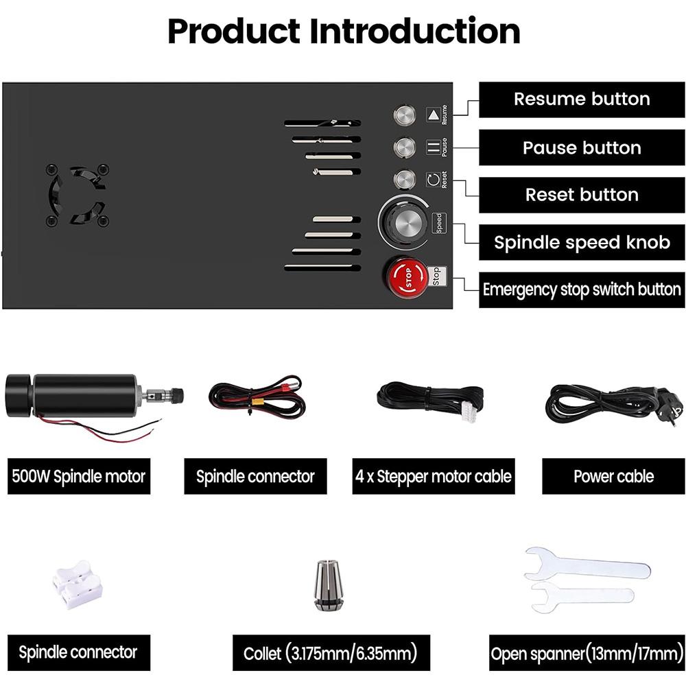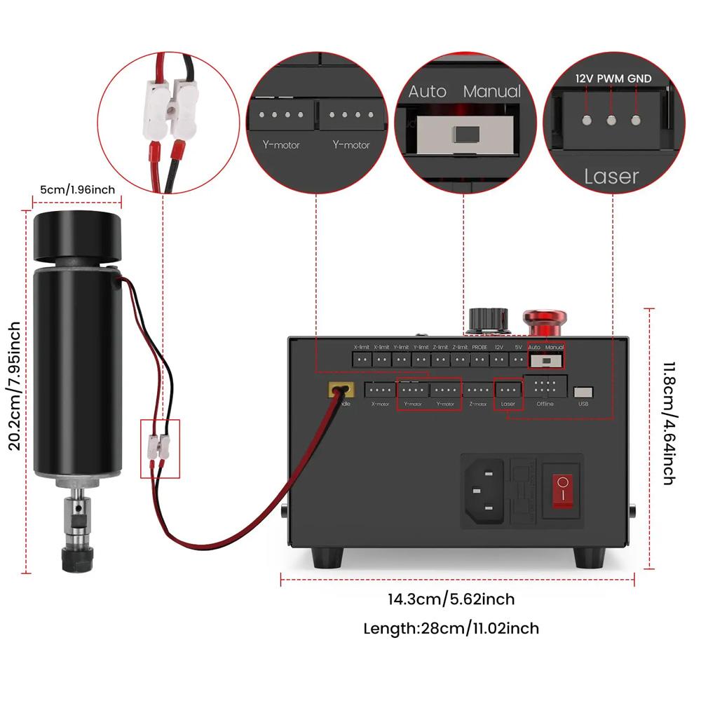 • Meeting Your Needs: The spindle integrated control box motor features low noise and low electromagnetic interference, It is Compatible with GRBL, and CANDLE-control software and is ideal for CNC machining