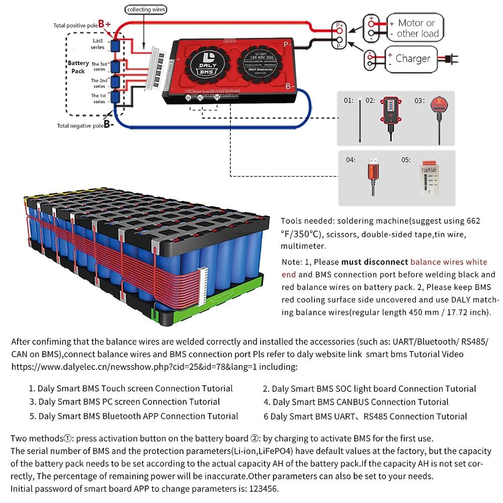 DALY BMS Li-ion 14S 48V 60A RS485/UART/Bluetooth