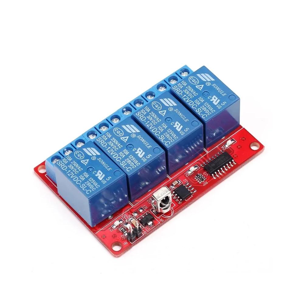 This 12V 4 Channel IR Wireless Relay Module with Remote Control is a four-channel latching relay module. The output of the module is a passive output and it can be controlled by its 4-button IR wireless controller when the module is powered on. The module comes equipped with a suitable remote control. It also can drive most household electrical appliances.
