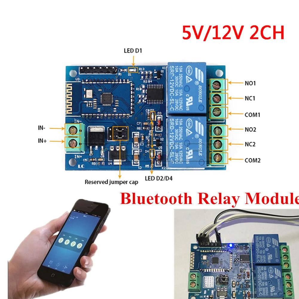 DC 12V Bluetooth 2 Channels Relay Module Remote Control Mobile Phone Switch Wireless Relay Module
