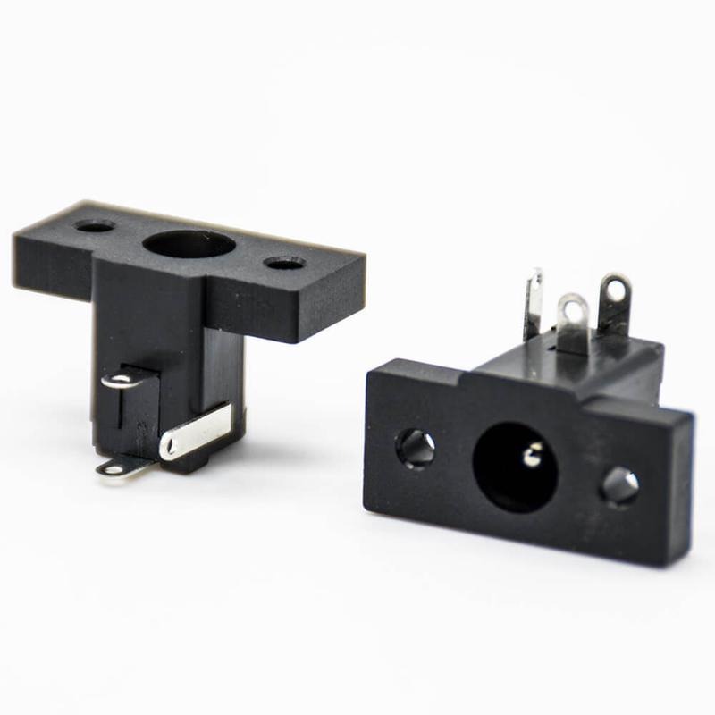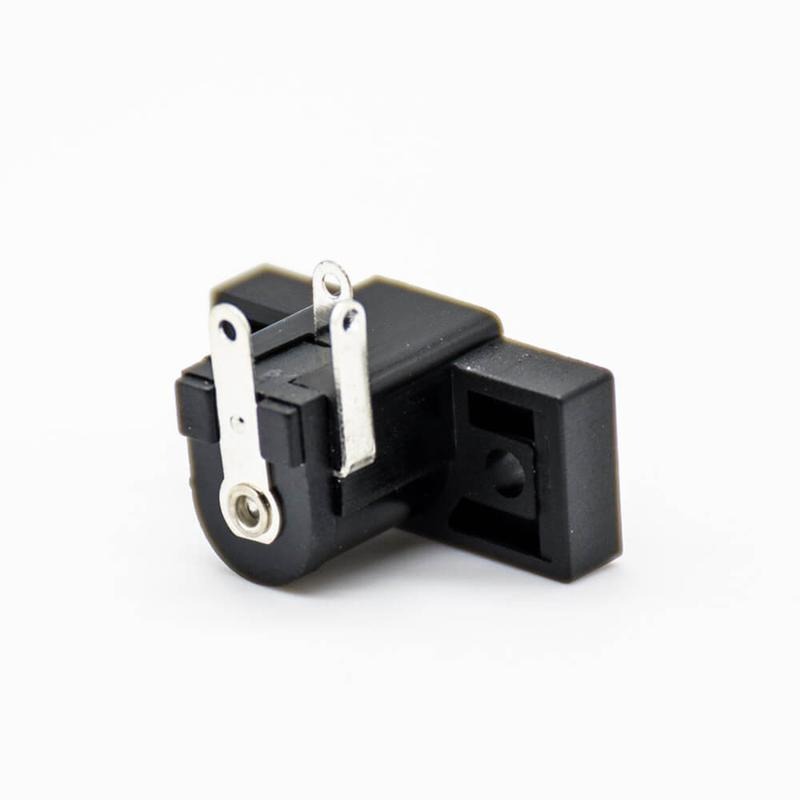 DC Power Connector, Male Jack, Panel Mount,2 Holes Flange, Through Hole, Right Angle, Unshield, Plastic, Black