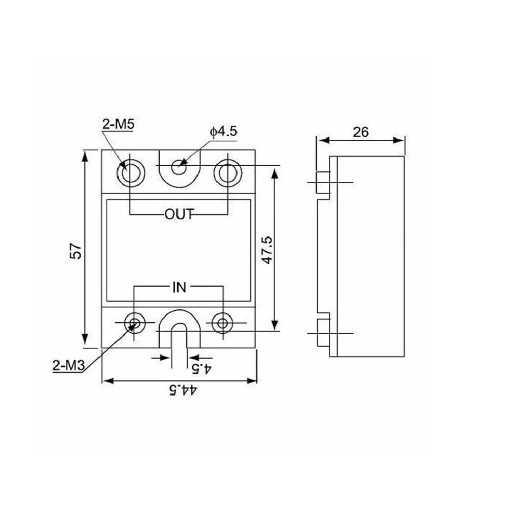 This particular SSR can switch current loads of up to 60A with a 3-32V DC input and a zero cross trigger control method. Each one of these relays is equipped with four screw terminals (for use with ring or fork connectors) and a plastic cover that slides over the top of the relay to protect the terminals.