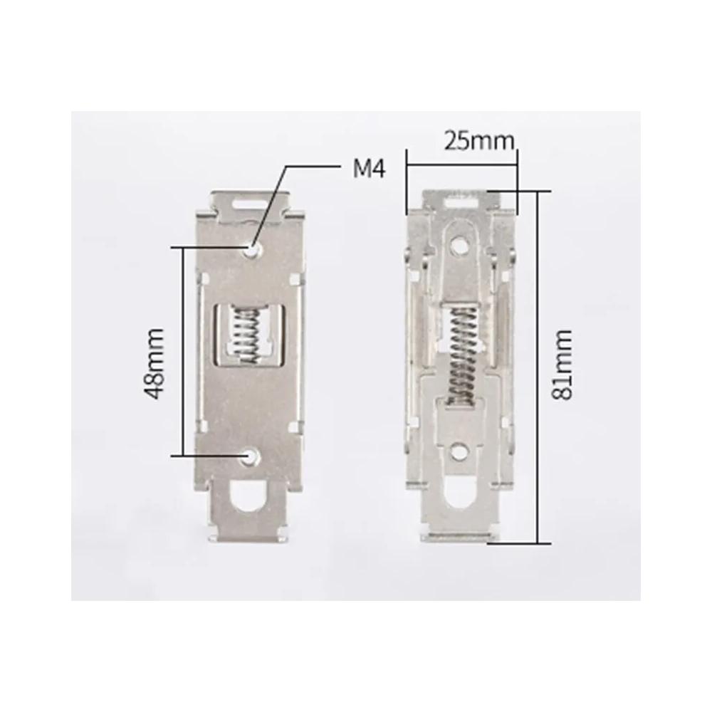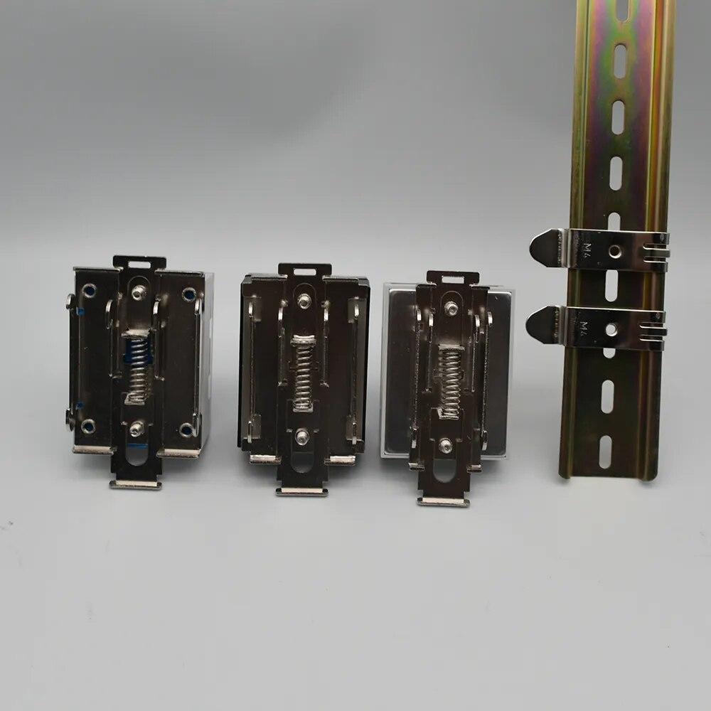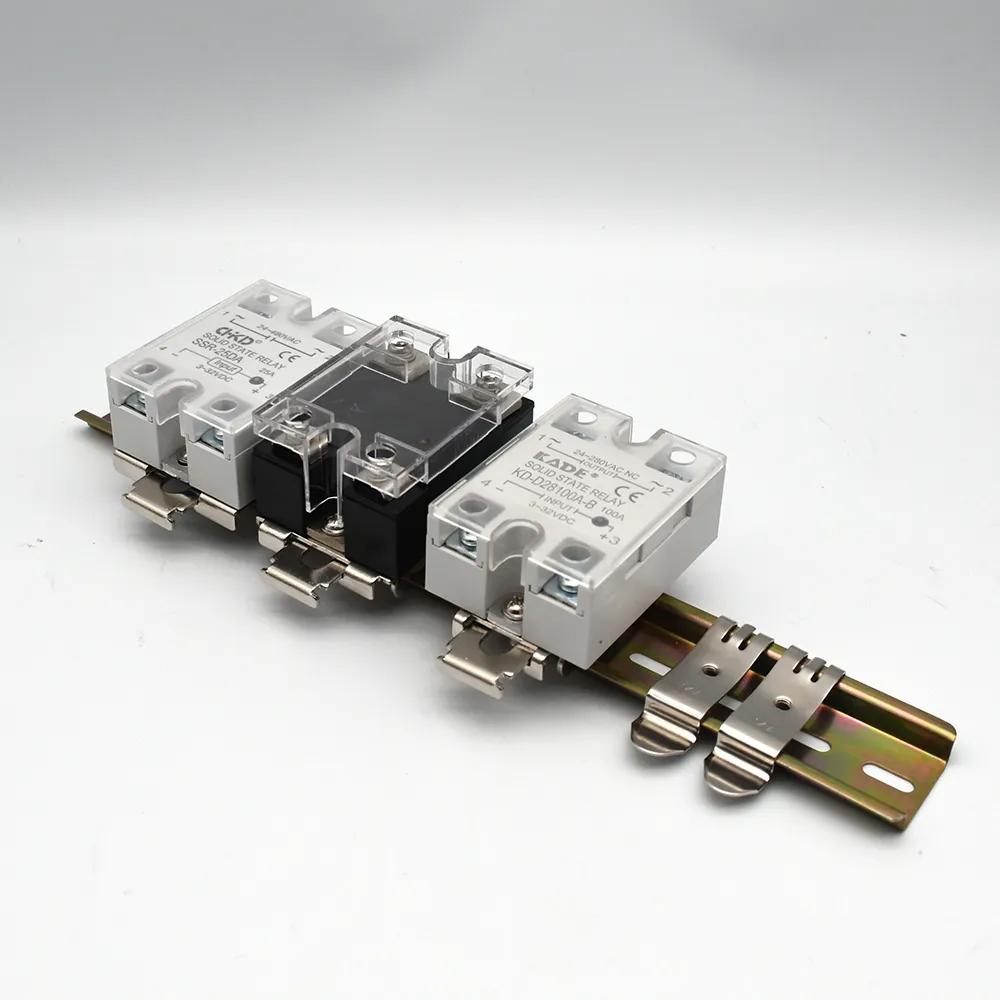 This is 35mm DIN Rail Mounting Fixed Buckle Snap Clip For Single Phase Solid State Relay. This metal DIN rail mounting clip is easy to install and is used for the DIN rail mounting frame of single-phase solid-state relay. It is made of high-quality metal, which is not easy to corrode and is durable.